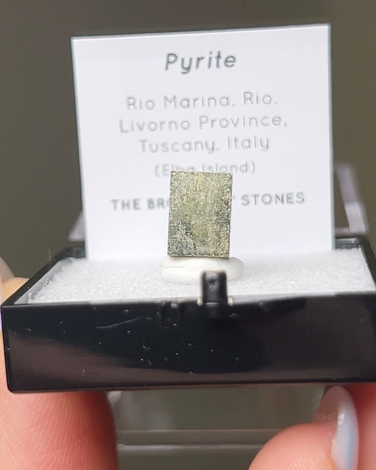 這件黃鐵礦(pyite)標本來自義大利厄爾巴島。為罕見的立方體黃鐵礦標本。