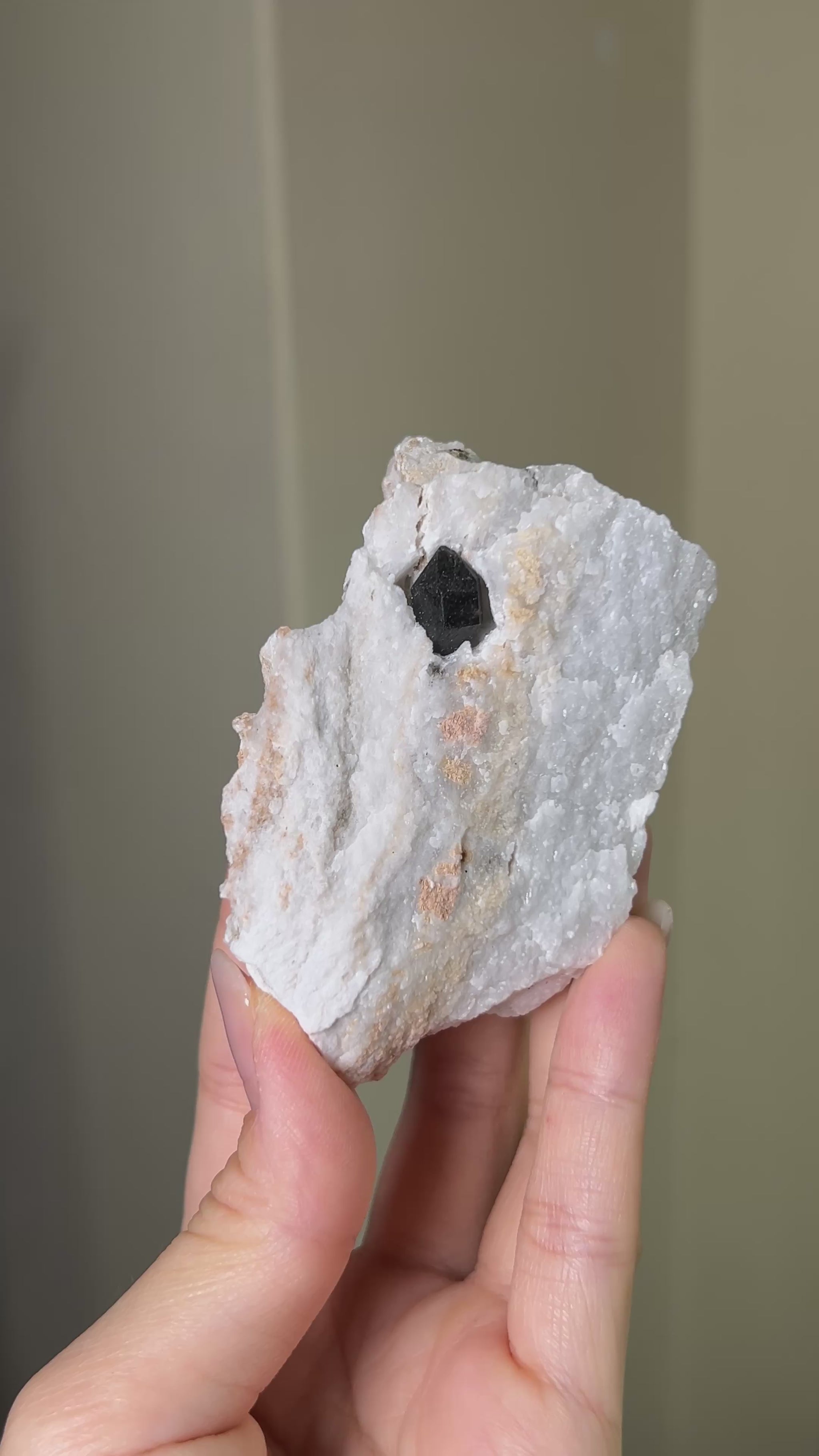 這顆黑水晶硬石膏(quartz on anhydrite)標本來自義大利Reggio Emilia。