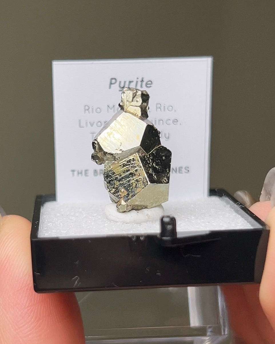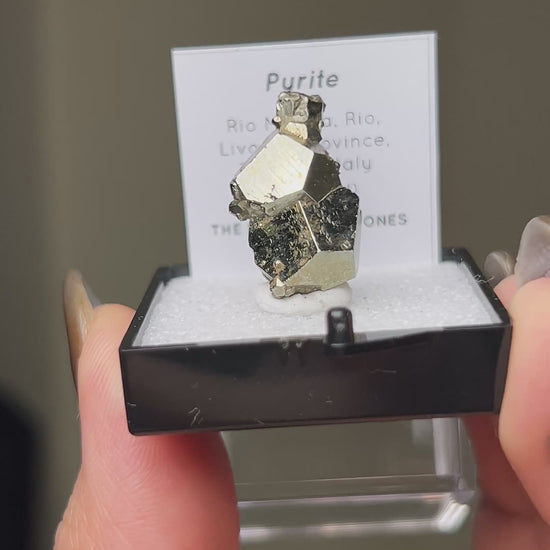 這件黃鐵礦(pyite)標本來自義大利厄爾巴島。為經典的五角十二面體(pyritohedral)黃鐵礦標本。